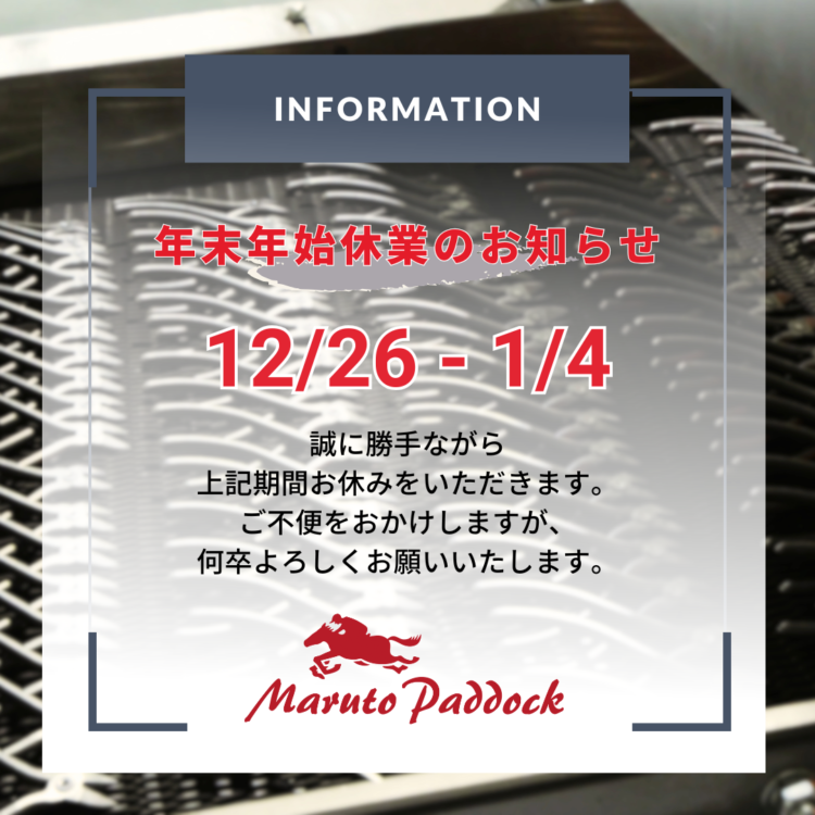 年末年始の休業期間について、お知らせ致します。