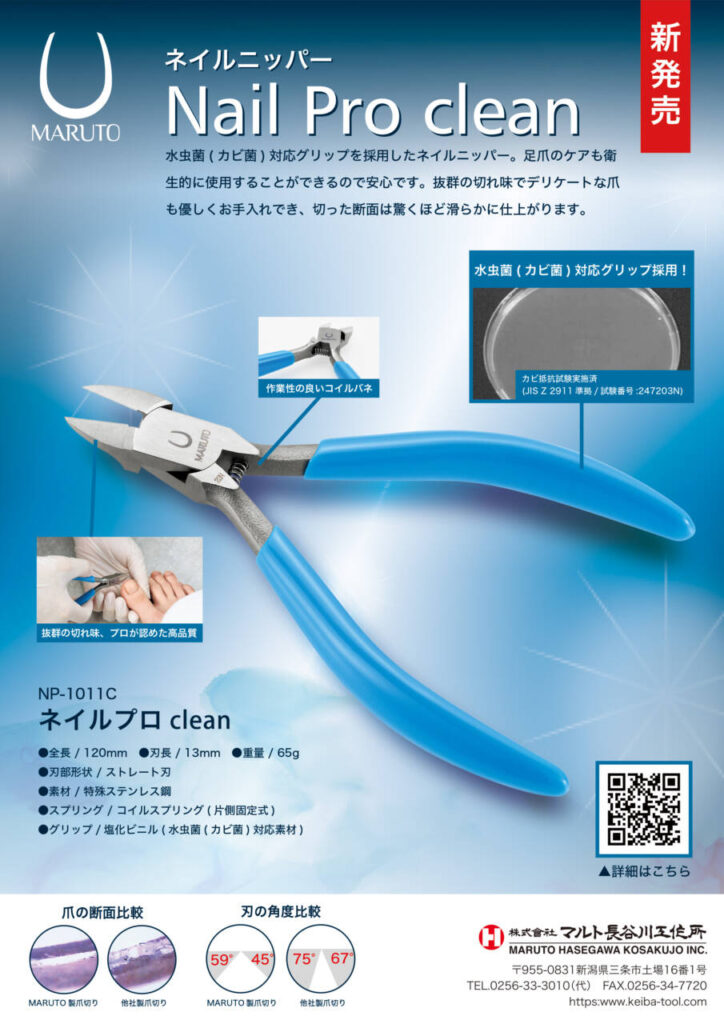 MARUTO ネイルニッパー 【ネイルプロclean】は特殊素材を使用したグリップで、真菌(水虫菌、カビ菌)の増殖を抑制します!